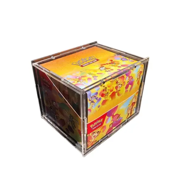 Cajita UltraPro de metacrilato con bisagra, perfecta para almacenar hasta 150 cartas TCG. Diseño premium, duradero y compacto.