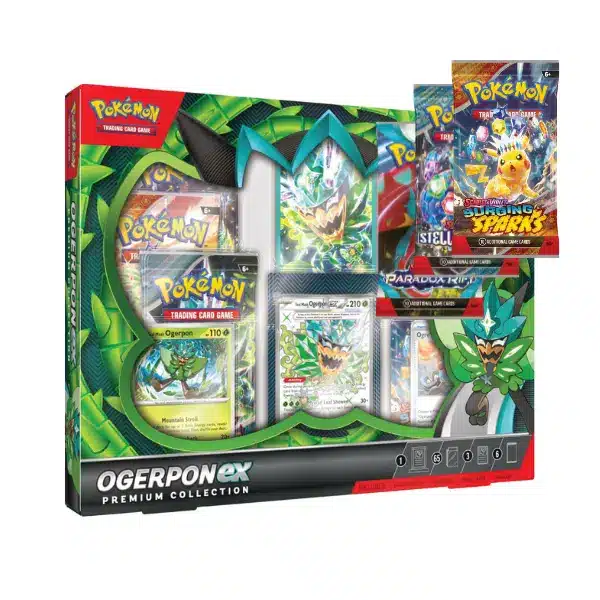 Contiene: 2 cartas holográficas de Mew V, 2 cartas holográficas de Mew VMAX, 2 cartas holográficas de Genesect V, 1 caja para cartas, 2 monedas a modo de marcadores de condición, 6 dados de contadores de daño