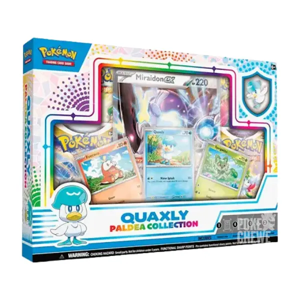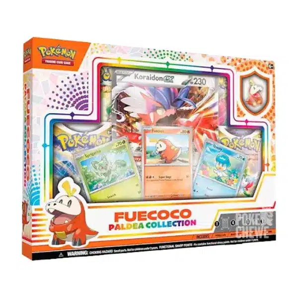 Caja de colección de Paldean en Español, modelos de Sprigatito, Fuecoco y Quaxly. Modelo aleatorio.