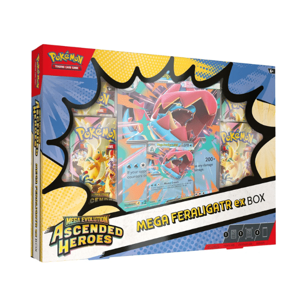 ¡Ya están aquí las cajas Mega Meganium ex, Mega Emboar ex y Mega Feraligatr ex!